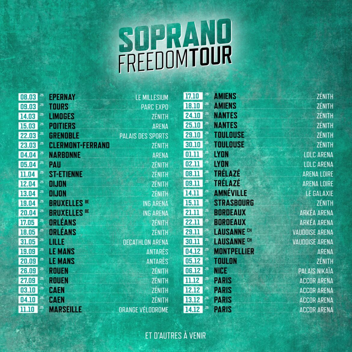 Soprano Tour 2026: Freedom – Dates, Villes & Billets